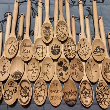 Every cook likes a decent wooden spoon in their kitchen. I hand burn spoons with fun designs for the fun cooks in your life.